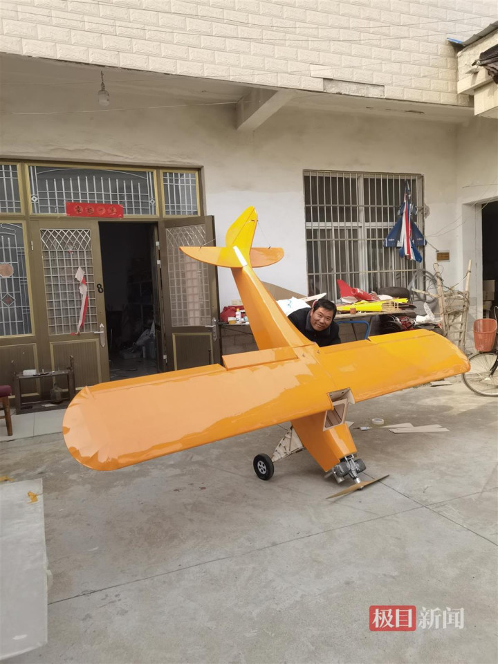 “航模是真飞机的缩小版,升降、左右调节和副翼都和真机是一样的操作。”张先忙向极目新闻记者介绍,第一次试飞以失败告终,因为他将左右副翼和升降都搞反了。调整后再次试飞那天,他将飞机电源接通,使用遥控器开始操作,在一阵发动机的轰鸣中,航模成功升空。但因是初次操作,飞行技术不熟练,这架航模最后因飞得太远没能成功返航而炸机,尽管结局遗憾,这次短暂的成功却让他信心倍增。
